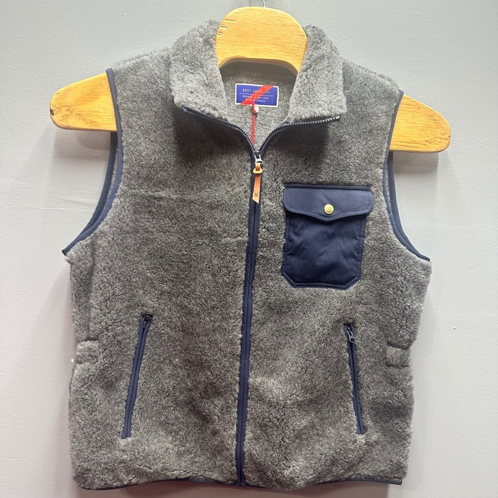 Best Made Co Mens Wool Fleece Vest Gray Full Zip Made in Canada NWT Size Large