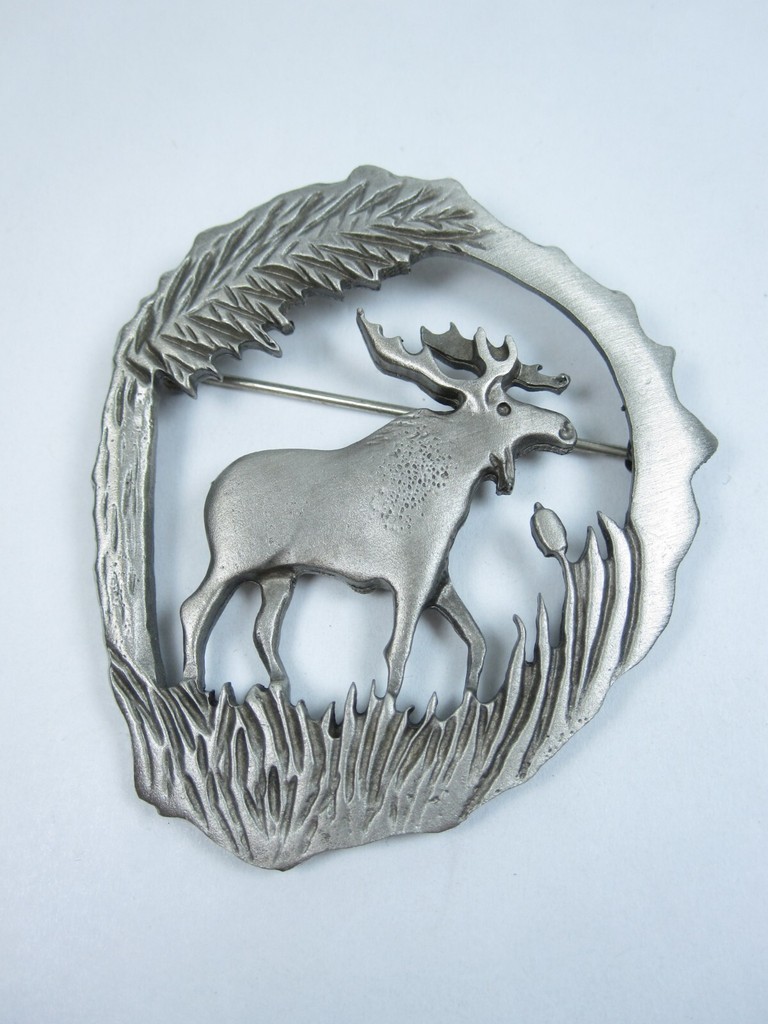 Michael Chartier Pewter Moose Brooch - Made in Canada - 5538