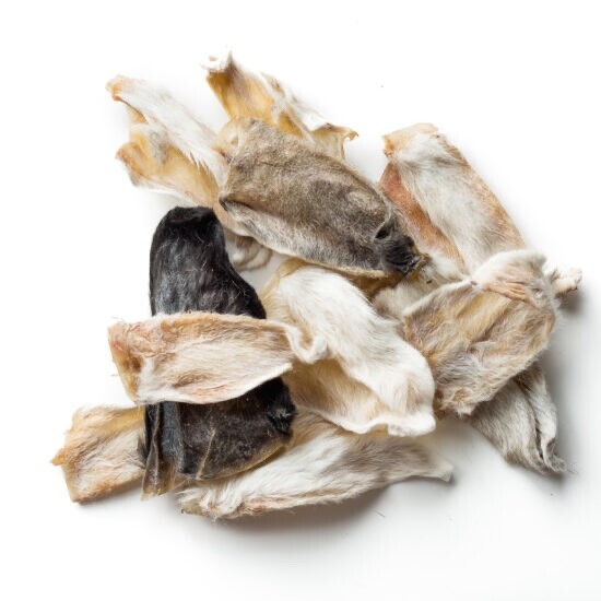 Natural Dehydrated Rabbit Ears With Furs Sourced and Made in Canada Pack of 10