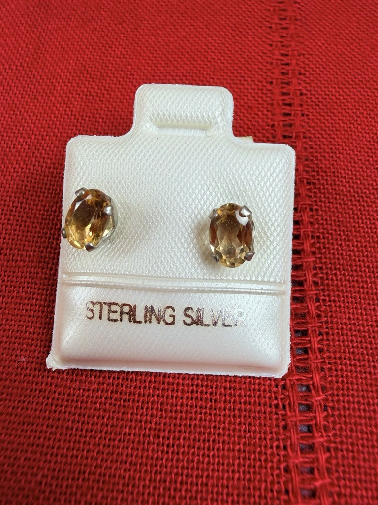 Sterling Silver 925 Genuine Citrine Stud Earrings 6x4mm Oval Made In Canada Vtg