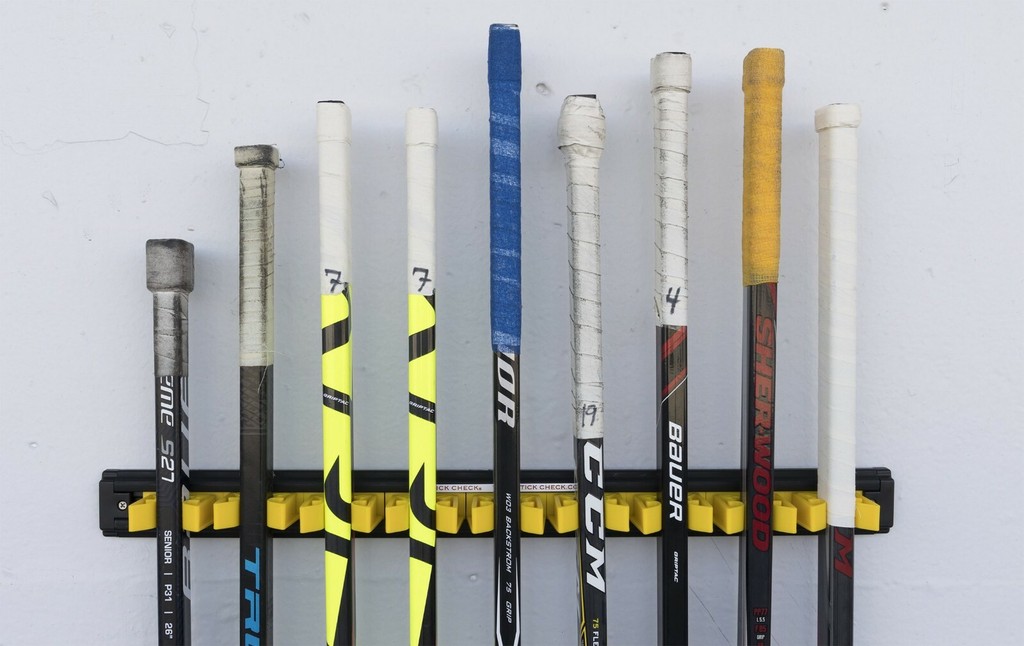 Stick Check Hockey Stick Rack! Holds 9 Sticks, Made in Canada Sticks Arena Home