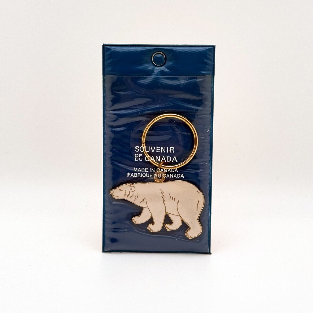 Vintage Canada Keychain NOS Enamel Polar Bear Arctic 1970s Made in Canada