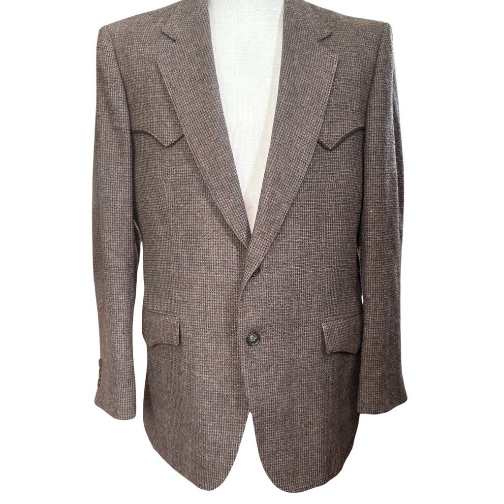 Vintage Flying Men Western Wool Suit Jacket Brown Size 40 Made In Canada