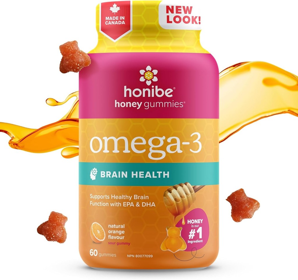 Honibe Omega 3 Gummies for Kids and Adults Made in Canada Supports Brain