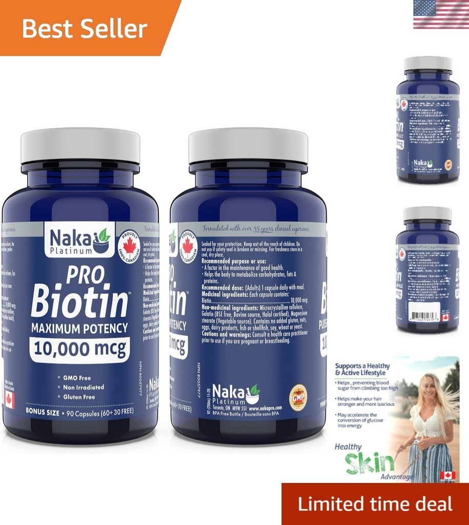 Made in Canada Biotin 10 000 mcg - 90 Capsules for Metabolic Support & Immunity