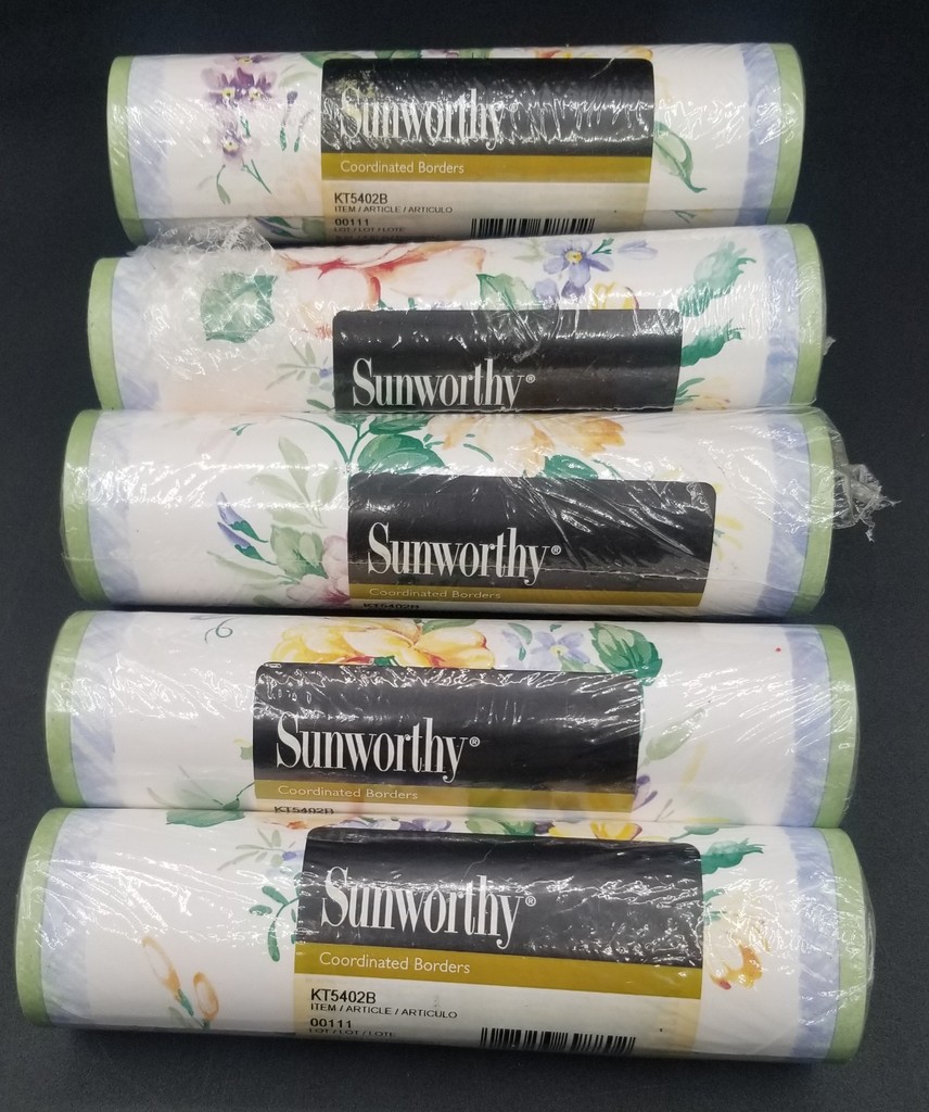 Vintage Sunworthy Prepasted Borders Florals Lot of 5, 25 Yards Made in Canada