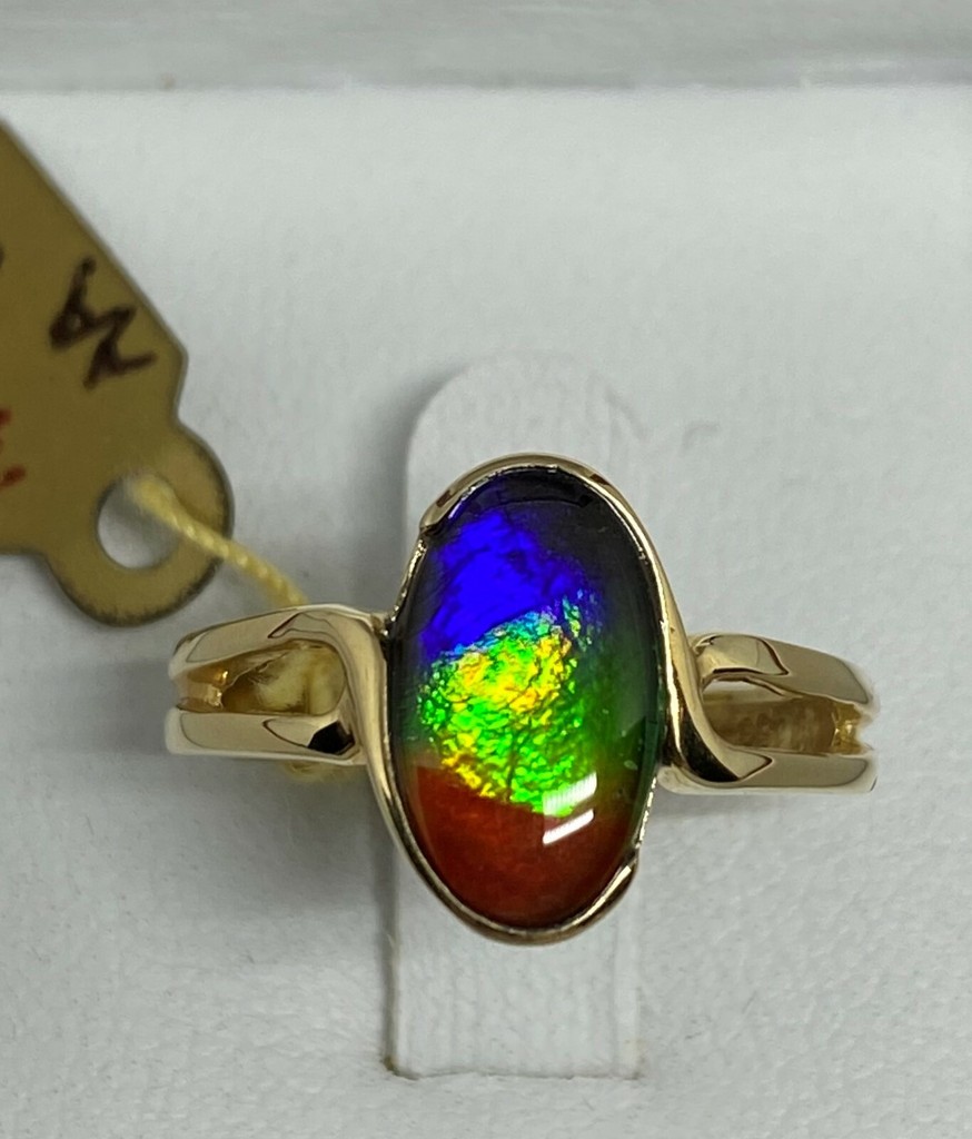 Solid 14K Yellow Gold Ring, Beautiful Ammolite Colour, Made in Canada