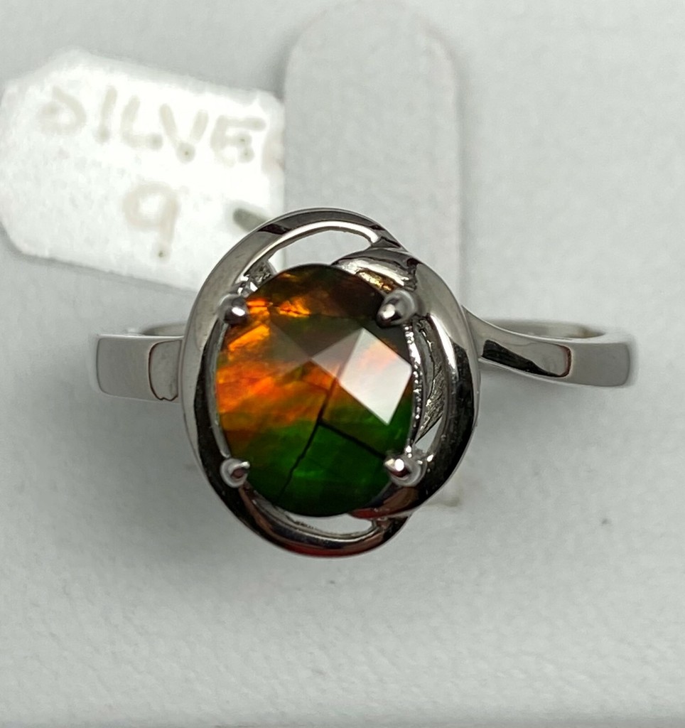 Elegant Women Korite Brand Ammolite Stone Jewelry Silver Ring Made in Canada