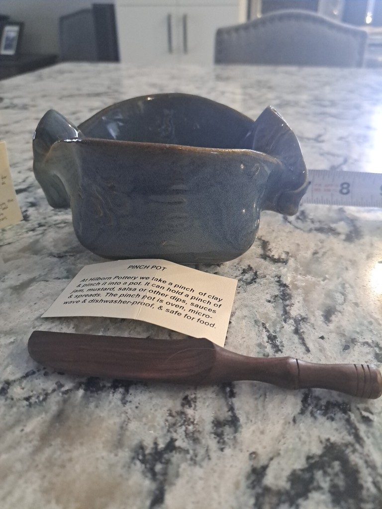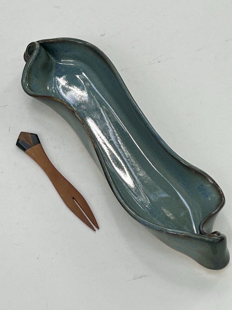 Studio Pottery Ceramic Olive Dish Wood Fork Signed Hilborn Made in Canada