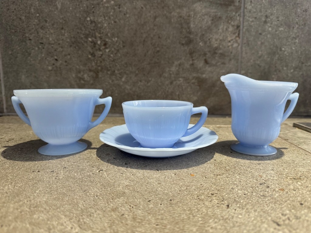 Pressed Tinted Glass Green Cruet Syrup Pitcher Made in Canada Embossed Design